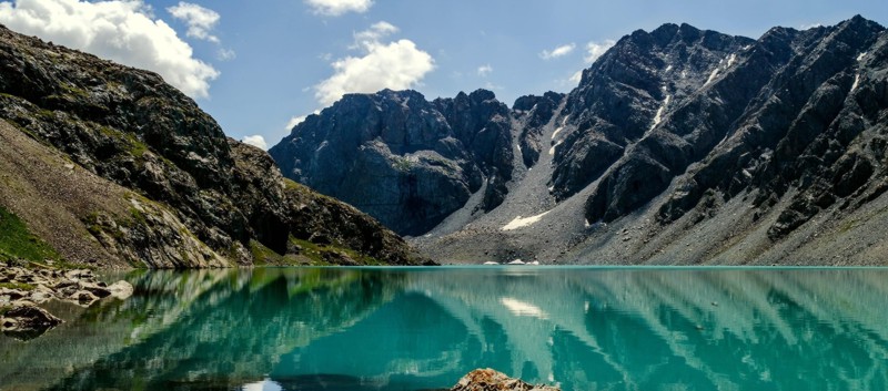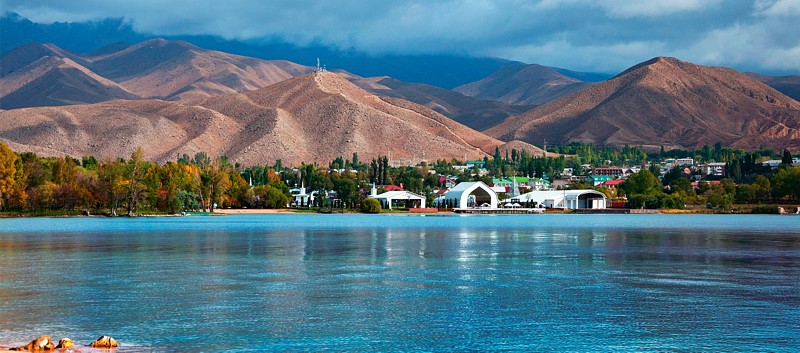 «Ысык» - в переводе с киргизского языка означает «горячее», и «кул» - «озеро». Неповторимая синева «Горячего озера» как бы прогрета щедрым среднеазиатским солнцем: оно не замерзает даже в суровые зимы. Среди высокогорных озер мира, лежащих на высоте более 1200 м, Иссык-Куль по площади зеркала занимает второе место, уступая лишь озеру Титикака в Перу (Южная Америка); по глубине и объему воды — первое. Длина Иссык-Куля 179 км, ширина — 60 км, площадь - 6,3 тыс. кв. км. Расположено озеро на высоте 1609 м над уровнем моря. Иссык-Куль издавна привлекал к себе внимание исследователей. Еще в 1856— 1857 гг. первым из русских путешественников здесь побывал П.П. Семенов-Тяншанский. Он гостеприимно был принят местным населением. Дружеское отношение киргизского народа помогло ему успешно завершить экспедицию по диким и глухим местам Иссык-Куля. Великий русский путешественник сравнивал Иссык-Куль со всемирно известным Женевским озером. Он писал: «Трудно себе представить что-нибудь грандиознее ландшафта, представляющегося путешественнику с Кунгея через озеро на Небесный хребет. Густо-синяя поверхность Иссык-Куля своим сапфировым цветом может смело соперничать со столь же синей поверхностью Женевского озера, но обширность водоема, который занимает поверхность в пять раз превосходящую площадь Женевского озера, казалась мне с западной части Кунгея почти беспредельной на востоке, и ни с чем не сравнимое величие ландшафта придает ему такую грандиозность, которой Женевское озеро не имеет». Величественные снежные вершины, окаймляющие Иссык-Куль, создают замкнутую котловину. Горы, окружающие озеро с севера, известны под названием Кунгей Ала-Тоо, а с юга — Терскей Ала-Тоо. Горное обрамление прорезано лишь на западе Боомским ущельем, через которое проходит железная дорога и автомобильная магистраль.