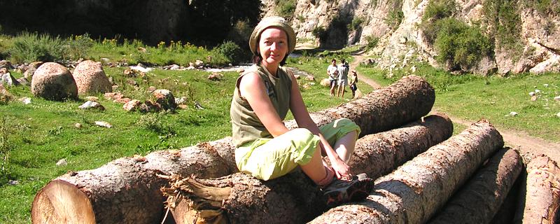 Настало время рассказать о более продолжительных маршрутах. На этот раз отправимся в живописное ущелье "Жууку". Направление маршрута - на восток от п. Каджи-Сай, около 70 км. по трассе Балыкчы - Каракол и 17 км. на юг, в сторону горного хребта "Тескей Ала-Тоо". Поворачиваем в селе Саруу, на предпоследнем перекрестке и выехав за пределы жилого сектора, оказываемся на пустыре с растительностью как и на всем южном, предгорном побережье: - ковыль, облепиха, полынь и степной кустарник. Проезжаем посевные угодья ячменя и экспорцета, еловый и тополевый питомники. Грунтовая дорога (по крайней мере в сезоне 2009 г.) вполне удовлетворительная, правда никто ее здесь не увлажняет, но наш микроавтобус герметичен и дорожная пыль в салон не проникает :).